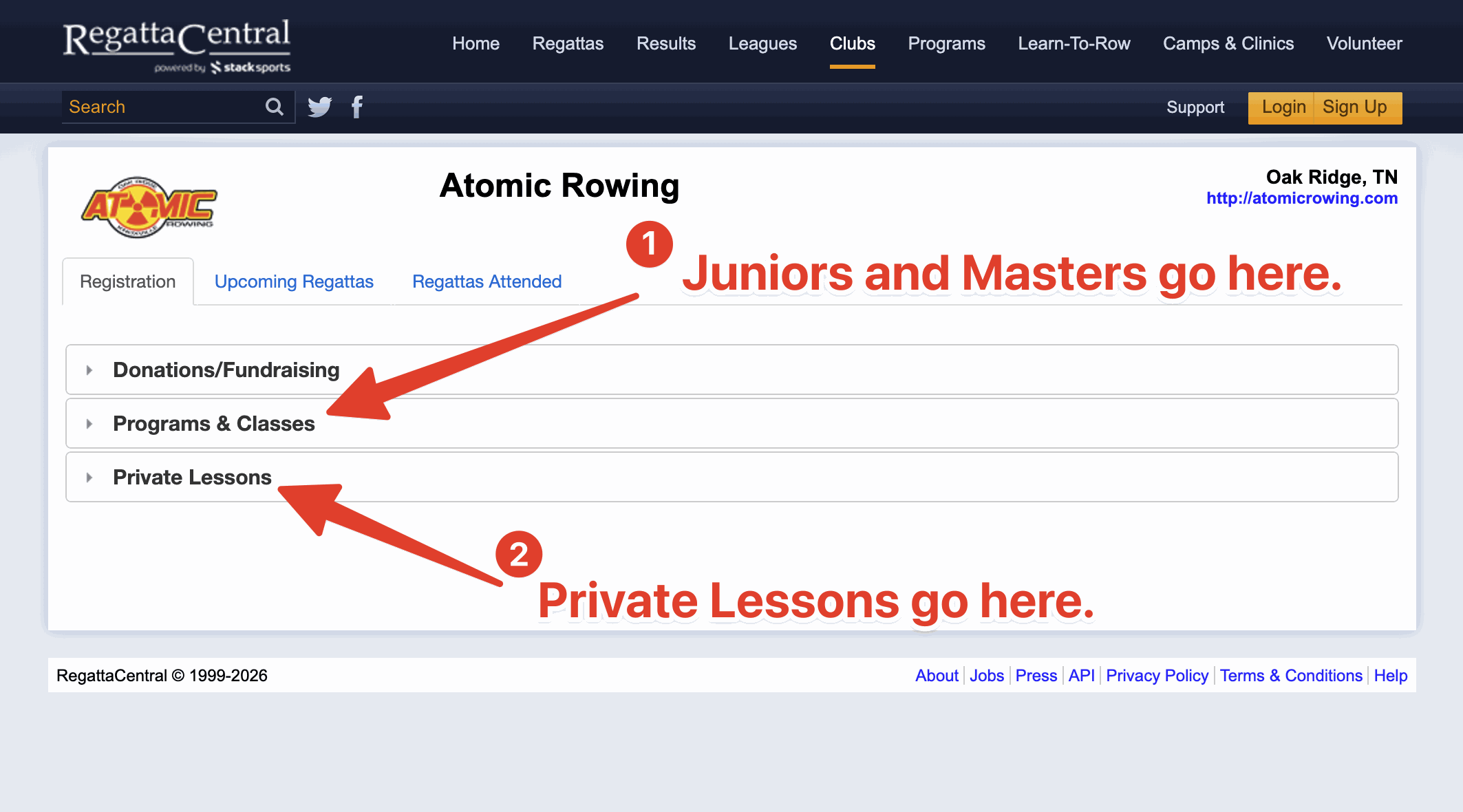 In order to register for Atomic Juniors/Masters programs or Private Lessons, please visit Regatta Central: