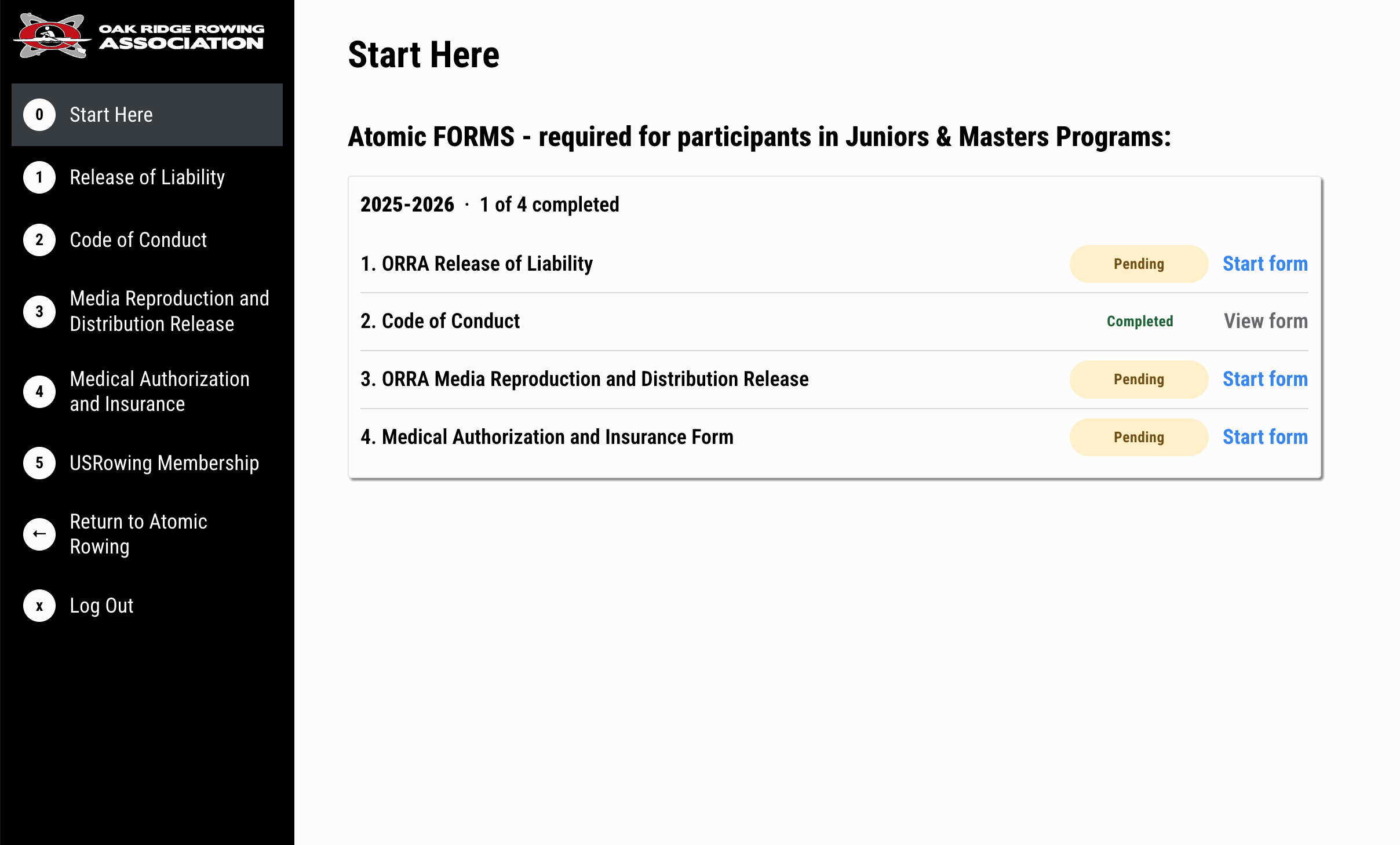 Learn to Row participants and Visiting Athletes must complete the ORRA Release of Liability.